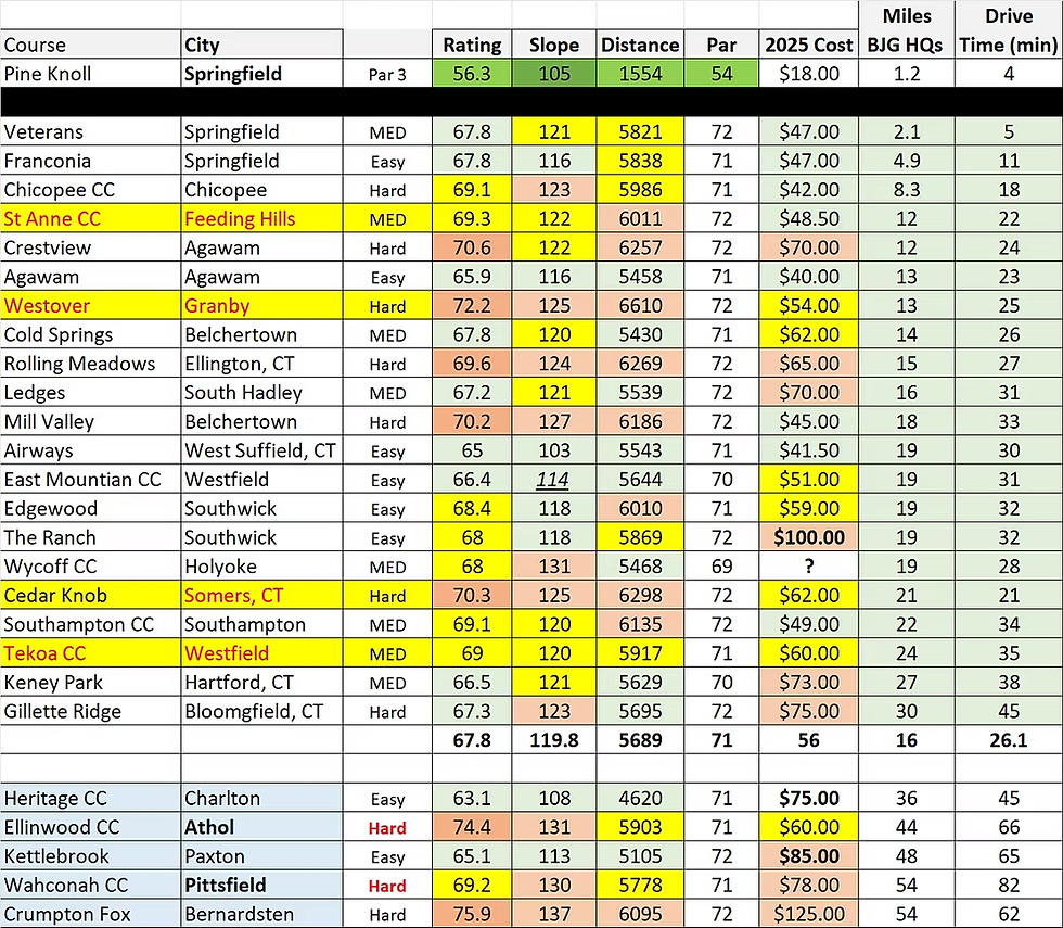 Below, I’ve compiled a complete list of area golf courses — including those requested by the membership — showing: